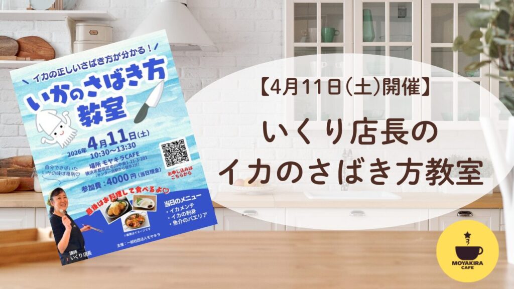 センター北のコミュニティカフェ「モヤキラCAFE」から、ワクワクする体験イベントのお知らせです! 「スーパーで丸ごとのイカを見かけても、さばき方が分からなくてつい切り身を買ってしまう…」「魚介料理に挑戦してみたいけれど、下処理が難しそう」 こん...