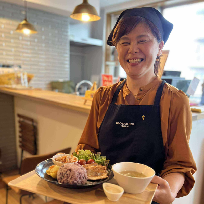 モヤキラ副代表としてCAFEを運営しています。 店長と協力し、訪れる方がほっとできる時間と心地よい空間を大切にしています。 ランチは体に優しい素材を選んだ料理を提供しています。