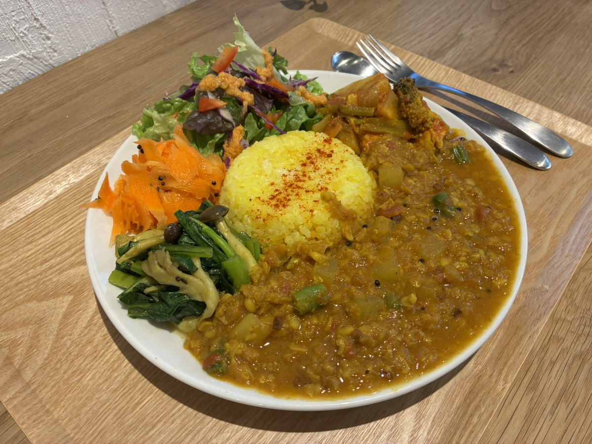 ホールとパウダーのスパイスを10種類以上ブレンドした優しい辛さのスパイスカレーです。季節のお野菜やカレーに合わせて作った副菜をそのまま食べたりカレーと混ぜたりとワンプレートカレーを楽しんでいただけると嬉しいです